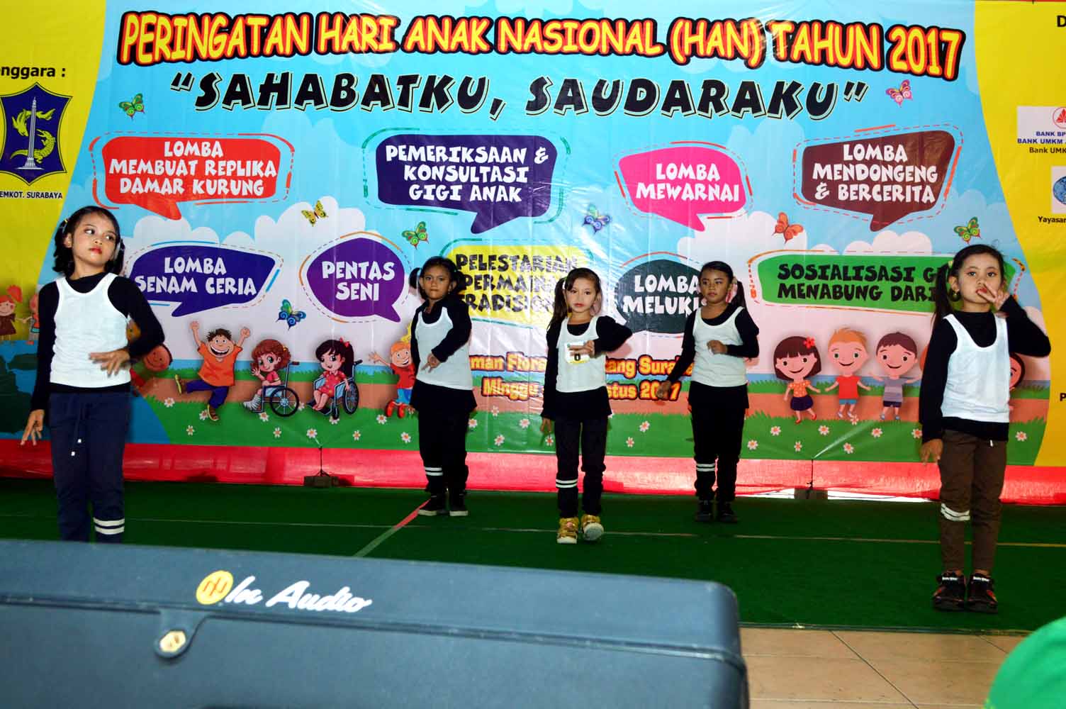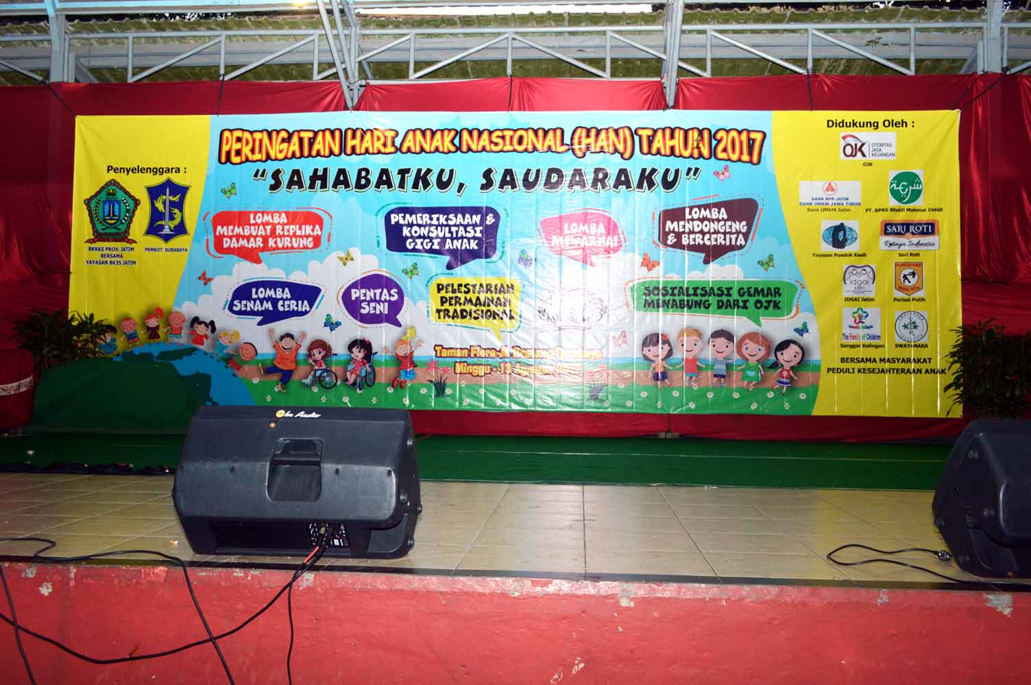 Dalam rangka memperingati Hari Anak Nasional Tahun 2017, Badan Koordinasi Kegiatan Kesejahteraan Sosial (BKKKS) Provinsi Jawa Timur bekerjasama dengan Pemerintah Kota Surabaya telah menyelenggarakan serangkaian kegiatan pada hari Minggu, 13 Agustus 2017 di Taman Flora Surabaya- Jl. Bratang Surabaya jam 06.00 s/d 11.00 wib