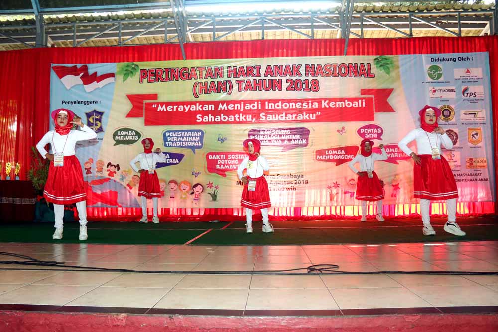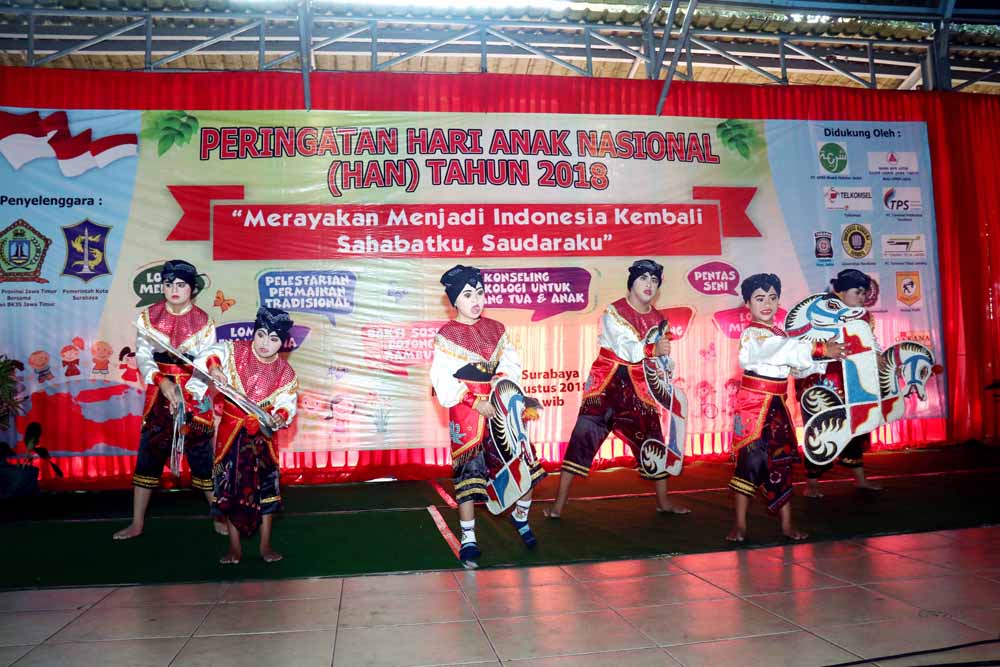 Kegiatan peringatan Hari Anak Nasional Tahun 2018 diselenggarakan pada  hari Minggu, 26 Agustus 2018 di Taman Flora Surabaya yang diikuti kurang lebih 500 anak. Tema kegiatan pada tahun ini adalah “Merayakan Menjadi Indonesia Kembali, Sahabatku, Saudaraku”. Kegiatan tersebut memberikan edukasi kepada masyarakat agar lebih perhatian dan mengerti akan hak-hak anak, selain itu kegiatan ini sebagai upaya menciptakan lingkungan yang menginspirasi tumbuh kembang dan kreatifitas anak.