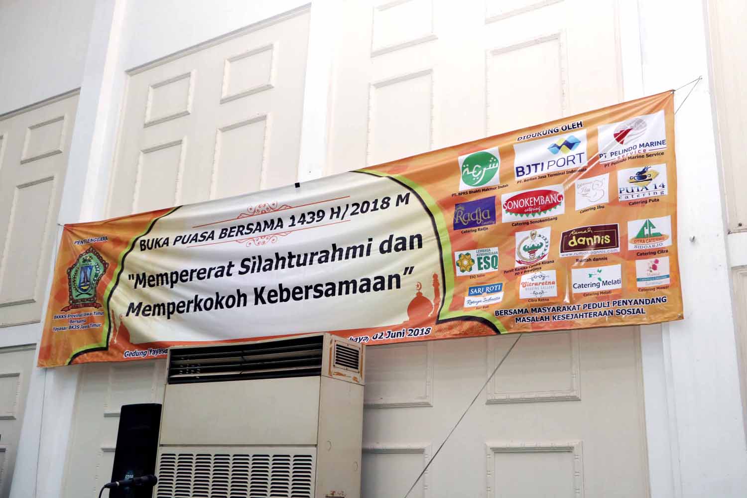 Kegiatan Buka Puasa bersama tahun ini dilaksanakan pada hari sabtu, 02 Juni 2018 dengan diisi serangkaian acara antara lain pembacaan ayat suci alquran, tausiah dan alunan lagu religi. tema buka puasa bersama tahun 1438 H/ 2017 M adalah ”Mempererat Silahturahmi dan Memperkokoh Kebersamaan” Kegiatan ini diikuti 1000 an orang anak-anak panti asuhan, anak jalanan, disabilitas, guru SLB honorer, UPT Rehabilitasi Eks Kusta Ngaget, UPT Liponsos surabaya, tukang becak, tukang sampah, petugas penjaga palang pintu kereta api, tukang koran, lansia binaan, petugas kemanan, tukang koran, penjaga pintu kereta api.