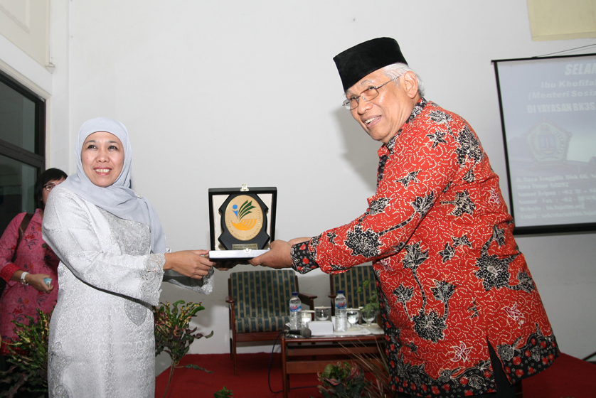 Ibu Khofifah Indar Parawangsa, Menteri Sosial Republik Indonesia dalam kunjungannya ke BKKKS Provinsi Jawa Timur di Jl. Raya Tenggilis GG 10 Surabaya pada hari Selasa, 6 Januari 2014 pukul 15.30 s.d. 16.30 WIB. Kegiatan utama dalam kunjungan tersebut adalah saling tukar informasi terkait permasalahan sosial.