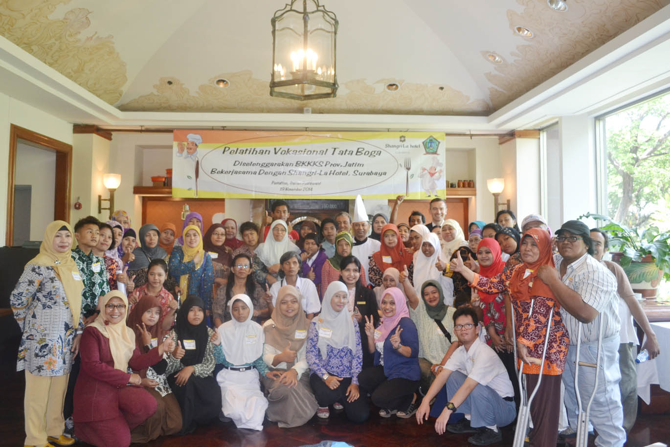 Pelatihan yang diselenggarakan oleh BKKKS Provinsi Jawa Timur bekerjasama dengan Shangri-La Hotel Surabaya tersebut berlangsung di Portofino, Italian RestaurantShangri-La Hotel Surabaya pada tanggal 19 November 2014 dengan materi menu makanan Itali dari Chef Putu. Peserta kegiatan tersebut berjumlah 50 orang terdiri dari 20 SLB dan 6 organisasi sosial disabilitas.