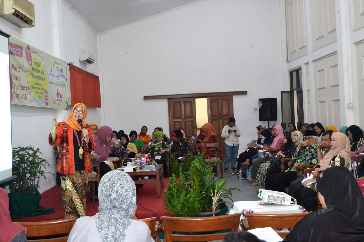 Narasumber dalam kegiatan tersebut adalah Ibu Dra. Erma Inayati, M.Si. dengan materi “Motivasi Penguatan dalam Keluarga Untuk Ads” , Ibu Dr. Sri Adiningsih, dr., M.S., M.CN dengan materi “Gizi Anak Down Syndrome dan Makanan Larangan”, Ibu Dr. Nyilo Purnami, dr., SP-THT-KL(K) dengan materi “Peran Orang Tua Terhadap Kesehatan Pendengaran Untuk Anak Down Syndrome”, Bapak Prof. Soegeng Soegijanto, dr., SpA(K) dengan materi “Imunisasi Pada Bayi dan Anak Berisiko” dengan Moderator Ibu Hj.Ida Sampit KaroKaro, SH, CN ,MH